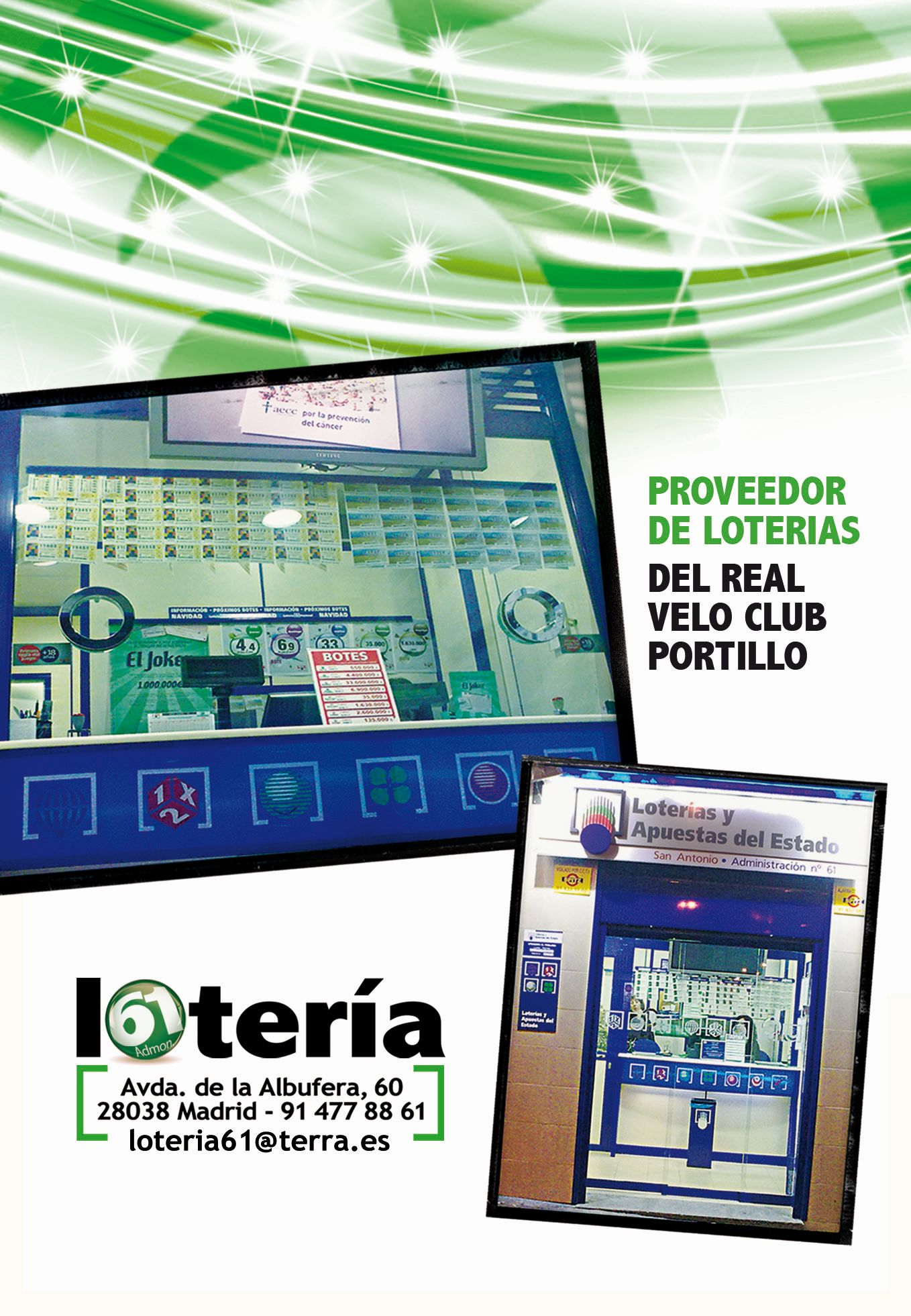 Colaboradores CERVECERÍA DAGO (Velilla de San Antonio) Café Bar Barquin (Collado Villalba) Bar Sanz Rosa (Colmenar Viejo) LOTERÍA AVENIDA ALBUFERA, 60 Centro de entrenamiento Cervecería PRISCO (Entrevías)
